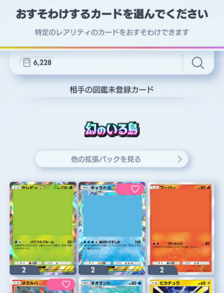 - 「相手の図鑑未登録カード」などから、贈るカードを選びます。