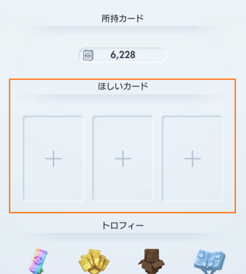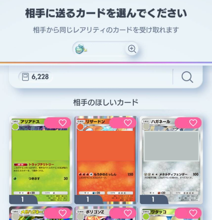 - トレード画面で相手の「ほしいカード」を優先して選び、提案する。