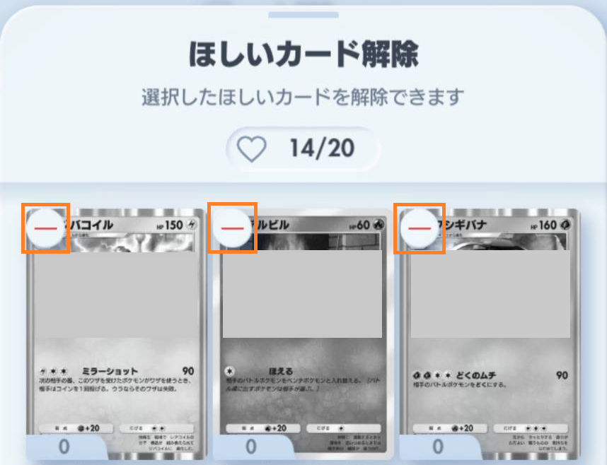 カードを入手しても、ハートマーク(ほしい!)は自動では消えません。