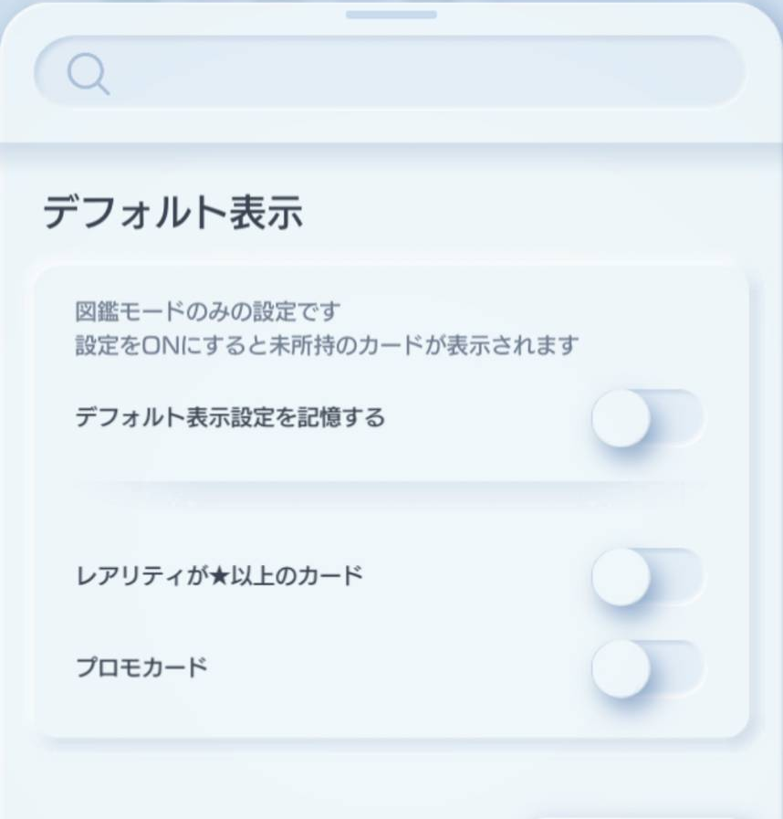 初期状態では持っているカードしか表示されませんが、設定を変えるだけで図鑑の空き状況が一目でわかるようになります。