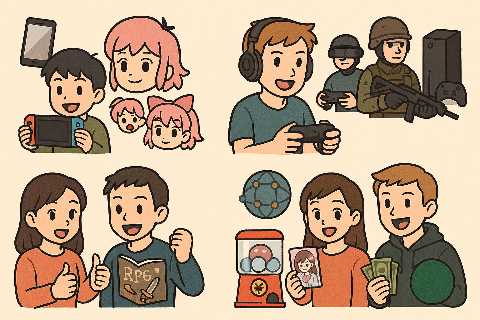 | 人気のジャンル | RPG(物語や育成を楽しむ) | シューター(FPS)(対戦や技術を競う) |